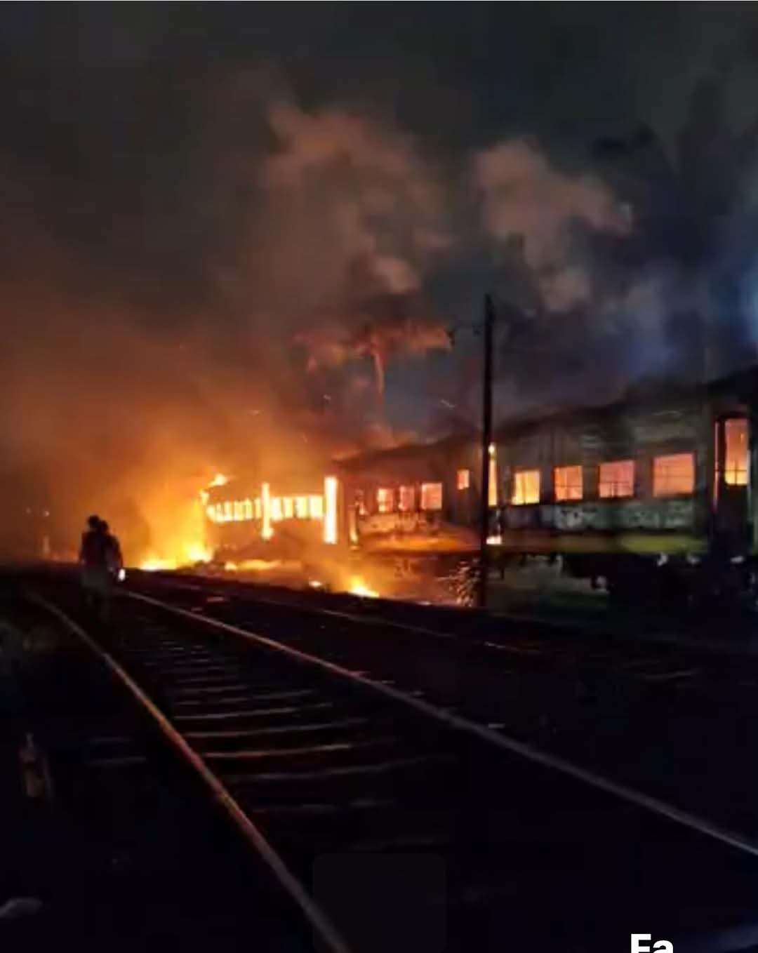 காலி ரயில் நிலையத்திற்கு அருகில் நிறுத்தி வைக்கப்படிருந்த ரயிலில் திடீர் தீ விபத்து. பல பெட்டிகள் தீக்கிரை.