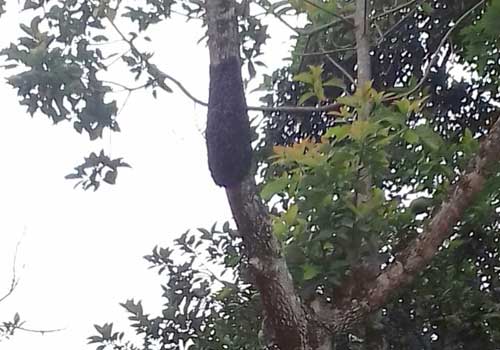 தலவாக்கலை - பாமஸ்டன் தமிழ் வித்தியாலயத்துக்கு அருகே, பாரிய குளவிக் கூடு, கலையும் நிலையில்...
