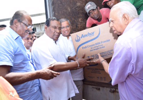இயற்கை அனர்த்தங்களினால் பாதிக்கப்பட்ட மக்களுக்கு, நிவாரணப்பொருட்களை வழங்கும் போது...