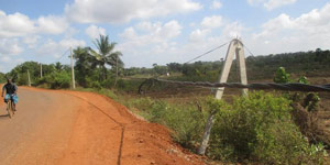 கிளிநொச்சி அக்கராயன் பகுதியில் கடந்த 10 தினங்களுக்கு முன்னர் முறிந்து விழுந்த மின்சாரக் கம்பம், இன்னும் திருத்தப்படாத நிலையில்...