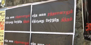 'எந்த வகை இரத்தமானாலும் மிதிபடுவது சேர்ந்தே நித்தம்' எனக் குறிப்பிடப்பட்டு சுவரொட்டியொன்று யாழில் ஒட்டப்பட்டுள்ளது....