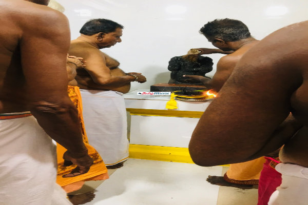 இன்று காலை முதல் பெருந்திரளான பக்தர்கள் நீண்ட வரிசையில் நின்று, பக்திப் பெருக்குடன் சுவாமிக்கு எண்ணெய்க்காப்பு சாத்தி வழிபட்டனர்.