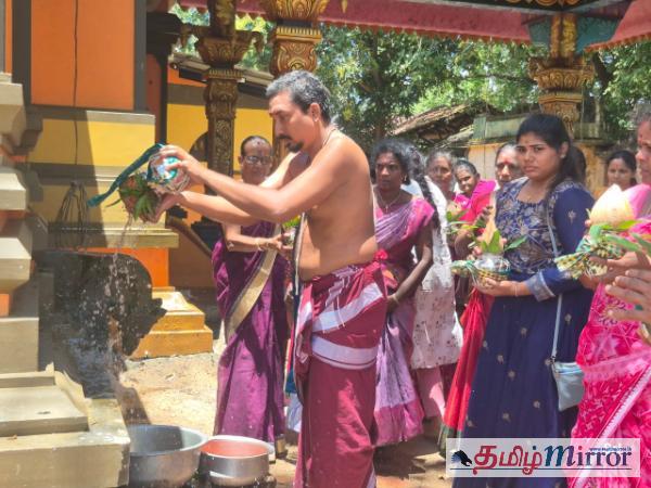 இக்கிரியைகளுக்கு சிவஸ்ரீ சபாரெத்தின குருக்கள் மற்றும் சிவஸ்ரீ மகேஸ்வர குருக்கள் ஆகியோர் ஒத்துழைப்பு வழங்கினர். செவ்வாய்க்கிழமை (24) பகல் 12 மணியளவில் சங்காபிஷேகம் இனிதே நிறைவேறியது.