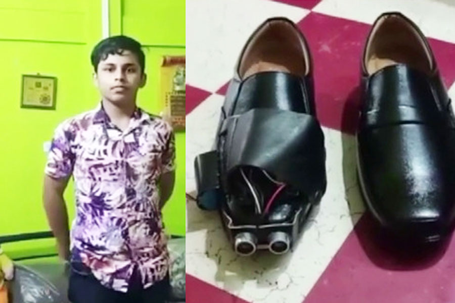 பார்வைக் குறைபாடு உள்ளவர்கள் பயன்படுத்தக்கூடிய வகையில் சென்சார் தொழில் நுட்பம் பொருத்தப்பட்ட சப்பாத்தினை அசாமை சேர்ந்த சிறுவனொருவன் வடிவமைத்துச் சாதனை படைத்துள்ளான்.