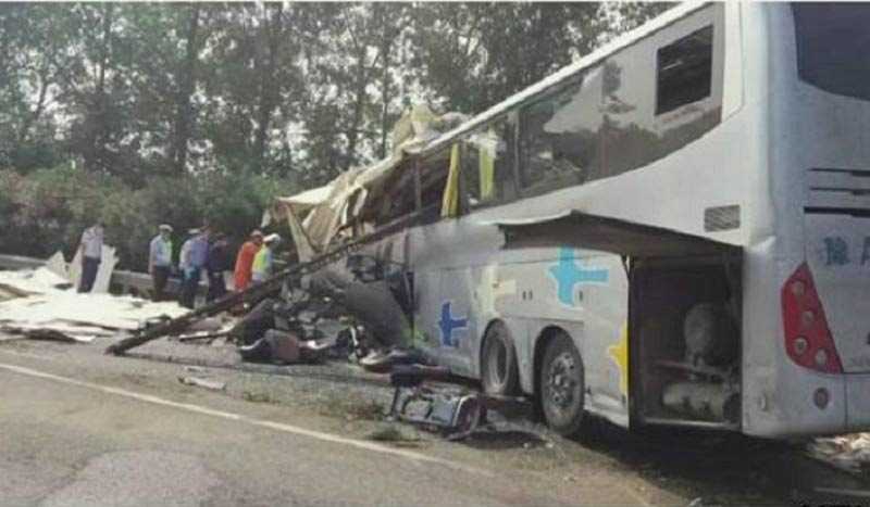 மூன்று பயணிகளைக் கொண்டிருந்த சரக்கு ட்ரக்கொன்றுடன் சங்சுன்-ஷென்ஸன் நெடுஞ்சாலையின் எதிர்த்தரப்பில் வந்த பஸ் இன்று மோதியதாக ஜியாங்சு மாகாணத்தின் யிக்ஸிங்ஸிலுள்ள பொலிஸார் கூறியுள்ளனர்.