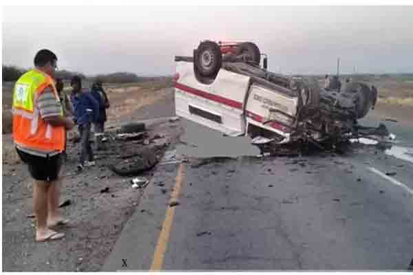 தெற்கு ஆப்பிரிக்காவில் அமைந்துள்ள நாடு நமீபியா. இந்நாட்டின் ஹர்டெப் மாகாணம் மெரிண்டெல் நகரில் சிறைத்துறை பஸ்சில் பொலிஸார், கைதிகள் உள்பட 13 பேர் பயணித்தனர். அந்த பஸ் நெடுஞ்சாலையில் சென்றுகொண்டிருந்தது. அப்போது, 6 பொலிஸ் காரர்களுடன் வந்தகொண்டிருந்த பொலிஸ் வேன் டிரைவரின் கட்டுப்பாட்டை இழந்து சிறைத்துறை பஸ் மீது மோதியது.