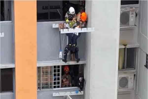 சிங்கப்பூர்க் குடிமைத் தற்காப்புப் படை அதிகாரிகள் வீட்டுக்குள்ளே இருந்து அவரைக் காப்பாற்ற முயற்சி செய்கின்றனர். கீழ் மாடியில் இருக்கும் வீட்டிலும் அதிகாரிகள் இருந்தனர்.