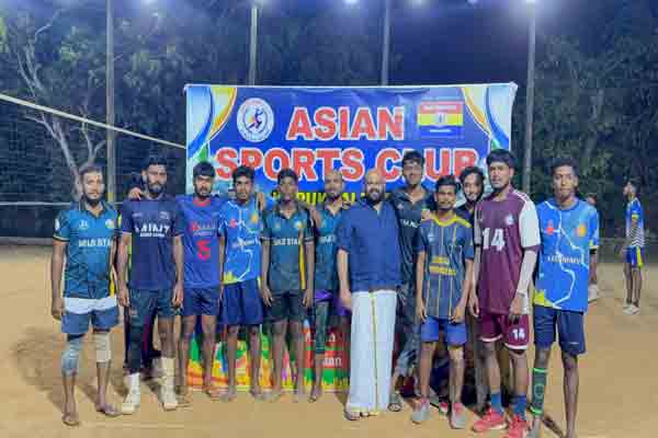 மட்டக்களப்பு மாவட்டம் களுவாஞ்சிக்குடி பிரதேச செயலக பிரிவிற்குட்பட்ட குருக்கள் மடம் ஏசியன் விளையாட்டு கழகத்தின் மாபெரும் மின்னொளி கரப்பந்தாட்ட சமரின் இறுதிப்போட்டி ஞாயிற்றுக்கிழமை ( 05 ) அன்று குருக்கள்மடம் கலைவாணி மகா வித்தியாலய மைதானத்தில் கழக தலைவர் நா.பிரியதர்சன் தலைமையில் நடைபெற்றது.