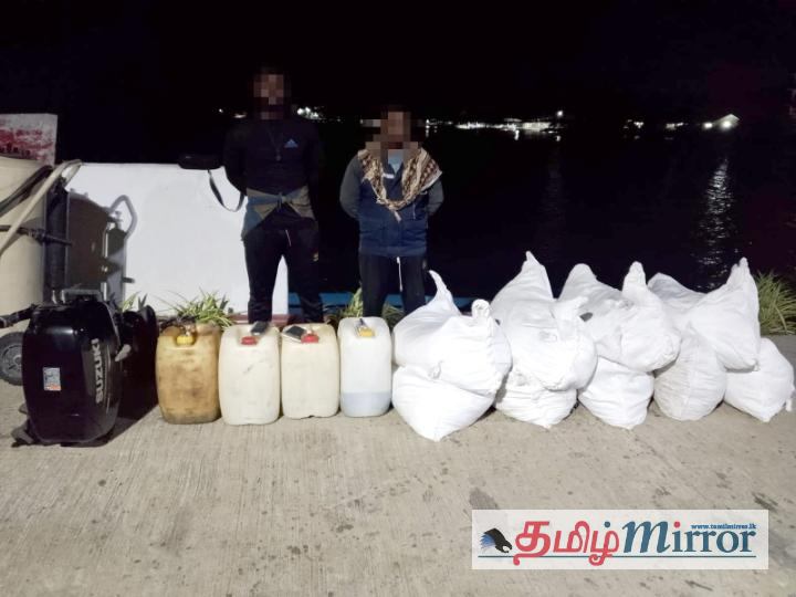 வடமேற்கு கடற்படை கட்டளையின் 'விஜய' கப்பலுக்குச் சொந்தமான உச்சமுனை கடற்படைப் பிரிவினர், கற்பிட்டி முகத்துவாரம் பகுதியில் நடத்திய சோதனையில் 418 கிலோகிராம் உலர்ந்த கடல் அட்டைகளை ஏற்றிச் சென்ற ஒரு டிங்கி படகையும், அதில் இருந்த இருவரையும் கைது செய்தனர்.