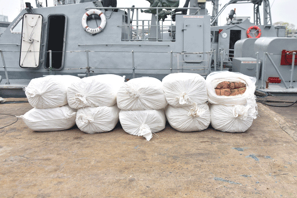 மாரவில கடல் பகுதியில் மேற்கு கடற்படை கட்டளையின் P484 கப்பல் நடத்திய இந்த சிறப்பு தேடுதல் நடவடிக்கையின் போது, குறித்த கடல் பகுதியில் கைவிடப்பட்டிருந்த பத்து சந்தேகத்திற்கிடமான பைகள் பரிசோதிக்கப்பட்டன. அதிலிருந்து சட்டவிரோதமாக கொண்டு வர முயற்சிக்கும் போது கடத்தல்காரர்களால் கைவிடப்பட்டதாக சந்தேகிக்கப்படும் 300 கிலோ கிராமை விட அதிகமான பீடி இலைகள் கைப்பற்றப்பட்டன.