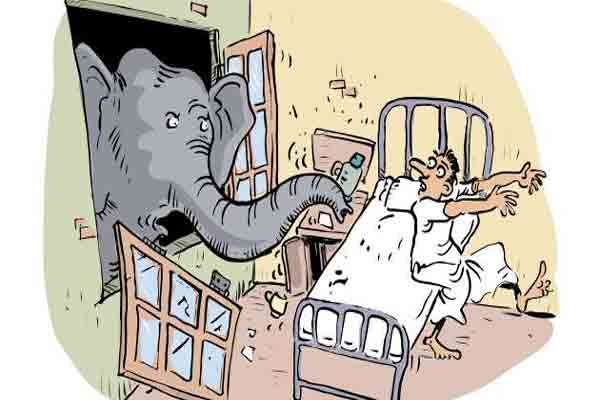 மருத்துவமனைக்குள் புகுந்து நோயாளி படுக்கையை சேதப்படுத்திய காட்டு யானை...