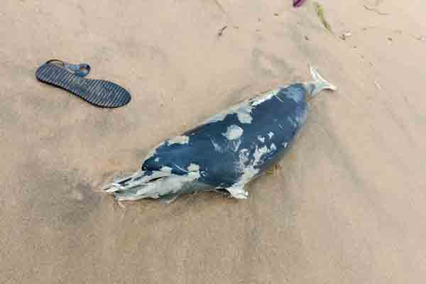 அம்பாறை மாவட்டம் கல்முனை மாநகர சபைக்குட்பட்ட கல்முனை கடற்கரை பள்ளிவாசல் முன்பாக உள்ள கடற் பகுதியில் டொல்பின் மீன் ஒன்று இறந்த நிலையில் புதன்கிழமை (18) அன்று கரையொதுங்கியுள்ளது.