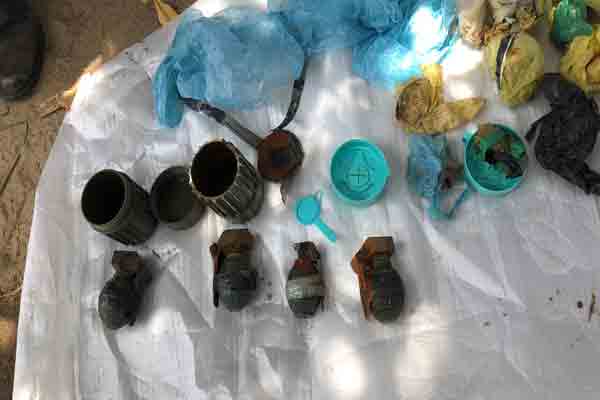 இதன்போது சுமார் ஐந்து அடி ஆழத்தில் புதைக்கப்பட்டிருந்த நிலையில் மூடியிடப்பட்ட வாளி ஒன்றினுள் இருந்து நான்கு கைக்குண்டுகள் மீட்கப்பட்டுள்ளன.