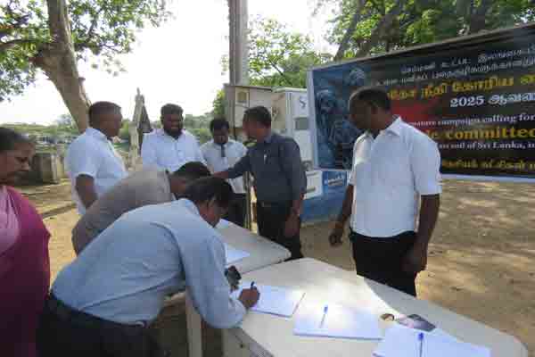 வடக்கில் செம்மணி புதைக்குழி உட்பட கிழக்கு மண்ணில் உள்ள மனித புதைகுழிகளுக்கும் இடம்பெற்ற இன படு கொலைக்குகும் சர்வதேச நீதி கோரிய கையெழுத்து போராட்டம் மட்டக்களப்பு காந்தி பூங்காவில் வியாழக்கிழமை (04) நடைபெற்றது.