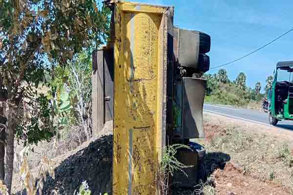 திருகோணமலை - மட்டக்களப்பு பிரதான வீதியின் 64 ஆம் கட்டை பகுதியில்,மூதூரிலிருந்து திருகோணமலைக்கு மணல் ஏற்றிச் சென்ற டிப்பர் ரக வாகனம்,மாடு குறுக்கறுத்ததன் காரணமாக வேகக்கட்டுப்பாட்டை இழந்து விபத்துக்குள்ளாகியுள்ளது.