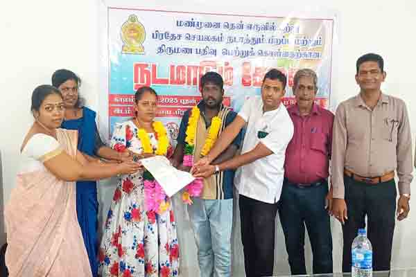 மட்டக்களப்பு மாவட்டம் மண்முனை தென் எருவில் பற்று பிரதேச செயலகம் ஏற்பாடு செய்த பிறப்பு மற்றும் திருமண பதிவு பெற்று கொள்வதற்கான நடமாடும் சேவையானது புதன்கிழமை (12) அன்று பிரதேச செயலாளர் உ.உதசிறீதர் தலைமையில் உதவி பிரதேச செயலாளர் சத்யகௌரி தரணிதரன் நெறிப்படுத்தலில் பிரதேச செயலக ஒன்றுகூடல் மண்டபத்தில் இடம்பெற்றது.