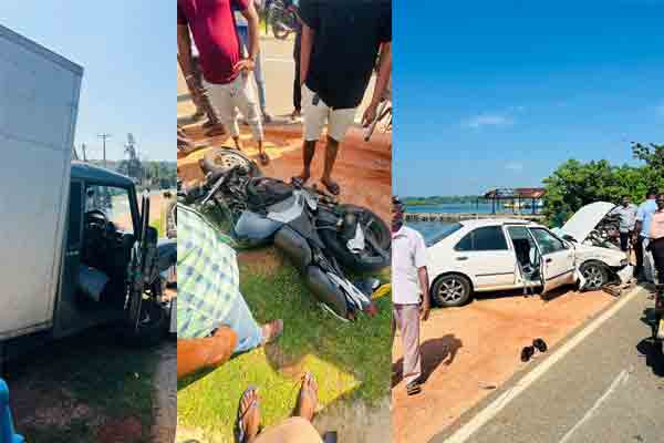 கார், பட்டாரக லொறி,மோட்டார் சைக்கிள் ஆகிய மூன்று வாகனங்களேஒன்றுடன் ஒன்று மோதி விபத்துக்கு உள்ளாகியுள்ளன.