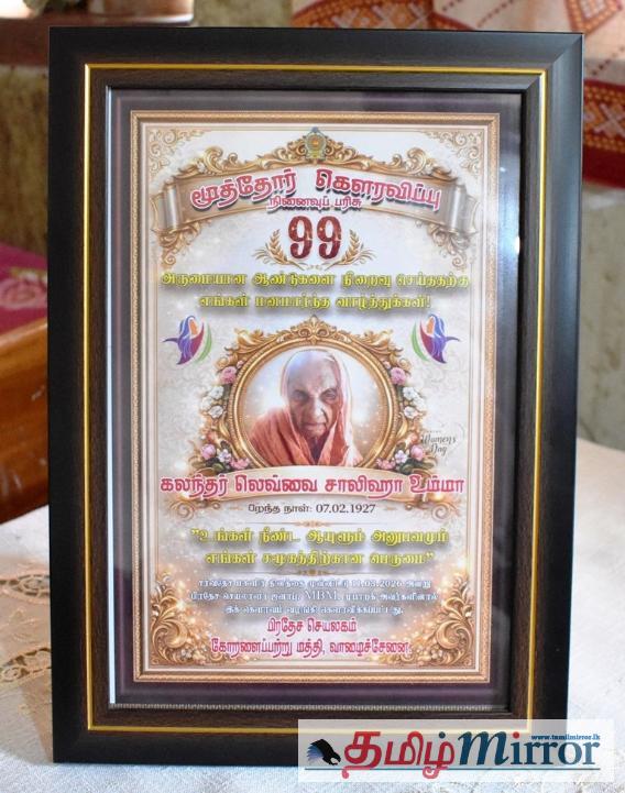 99 வயதை பூர்த்தி செய்து நூறாவது வயதில் தடம் பதிக்கும் மூதாட்டி ஒருவரை கௌரவித்து நினைவுப் பரிசு வழங்கி வைக்கப்பட்டுள்ளதாக, ‘சேர்க்கிள்’ (CIRCLE) இளம் பெண்கள் அமைப்பின் நிறைவேற்று பணிப்பாளர் அஜானி காசிநாதர் தெரிவித்தார்.