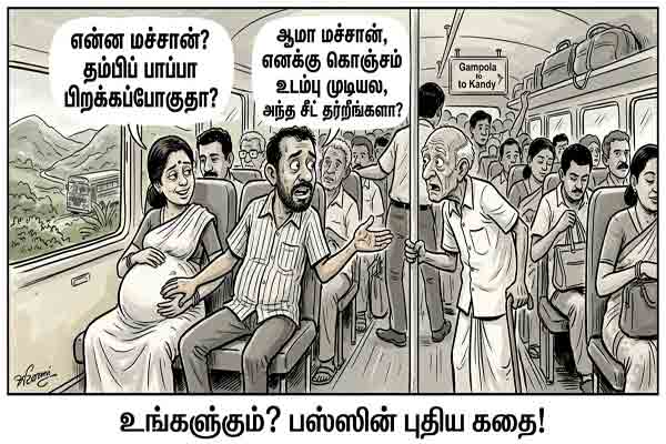 பொதுவாகப் பேருந்துகளில் கர்ப்பிணித் தாய்மார்களுக்கு ஆசனங்களை விட்டுக் கொடுப்பது மனிதாபிமானம். ஆனால், மனைவிக்கு இருக்கை கிடைத்த வேகத்தில், தானும் ஒரு 'நோயாளி' போல நடித்து முதியவரிடம் சீட் கேட்ட கணவரின் செயல் மலையகப் பேருந்து ஒன்றில் பெரும் சிரிப்பலையை ஏற்படுத்தியுள்ளது.