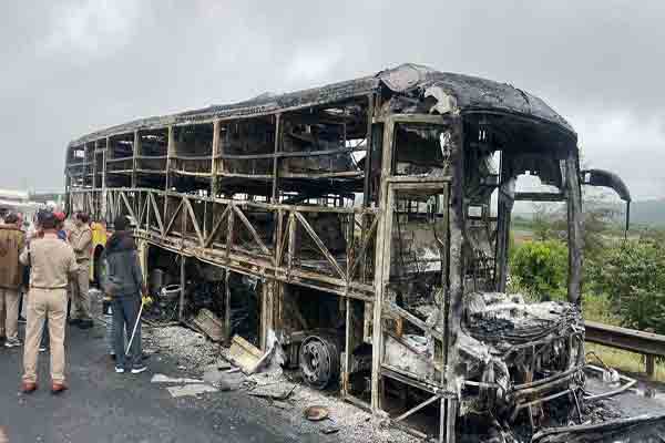இந்த விபத்தில் பலர் காயமடைந்தனர். தெலங்கானா மாநிலம் ஹைதராபாத் நகரில் இருந்து பெங்களூரு நகருக்கு 40 பயணிகளுடன் படுக்கை வசதி கொண்ட தனியார் வால்வோ பேருந்து நேற்று நள்ளிரவு புறப்பட்டுள்ளது.