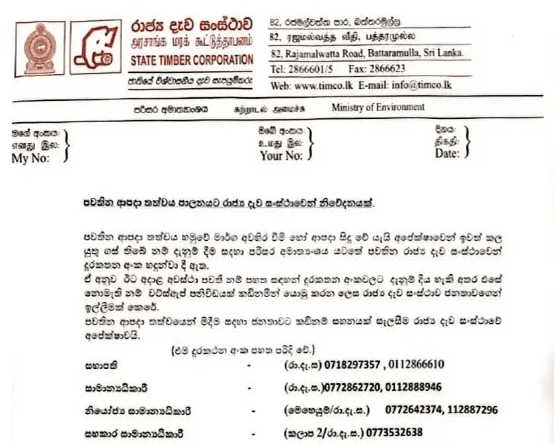 மேற்கண்ட வட்ஸ்அப் இலக்கத்தின் ஊடாகவும் தகவல்களை வழங்க முடியுமென அரச மரக் கூட்டுத்தாபனம் தெரிவித்துள்ளது.