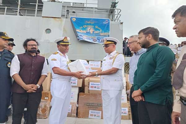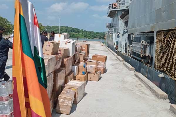 இதனை அடுத்து இந்திய தூதரகத்தின் பாதுகாப்பு ஆலோசகர் கடற்படை கப்டன் முகுந்,இலங்கையின் கிழக்கு பிராந்திய கடற்படை கட்டளைத்தளபதி ரியர் அட்மிரல் ரவீந்திர திசேராவிடம் நிவாரண பொருட்களை இறங்கு துறையில் வைத்து ஒப்படைத்தார்.