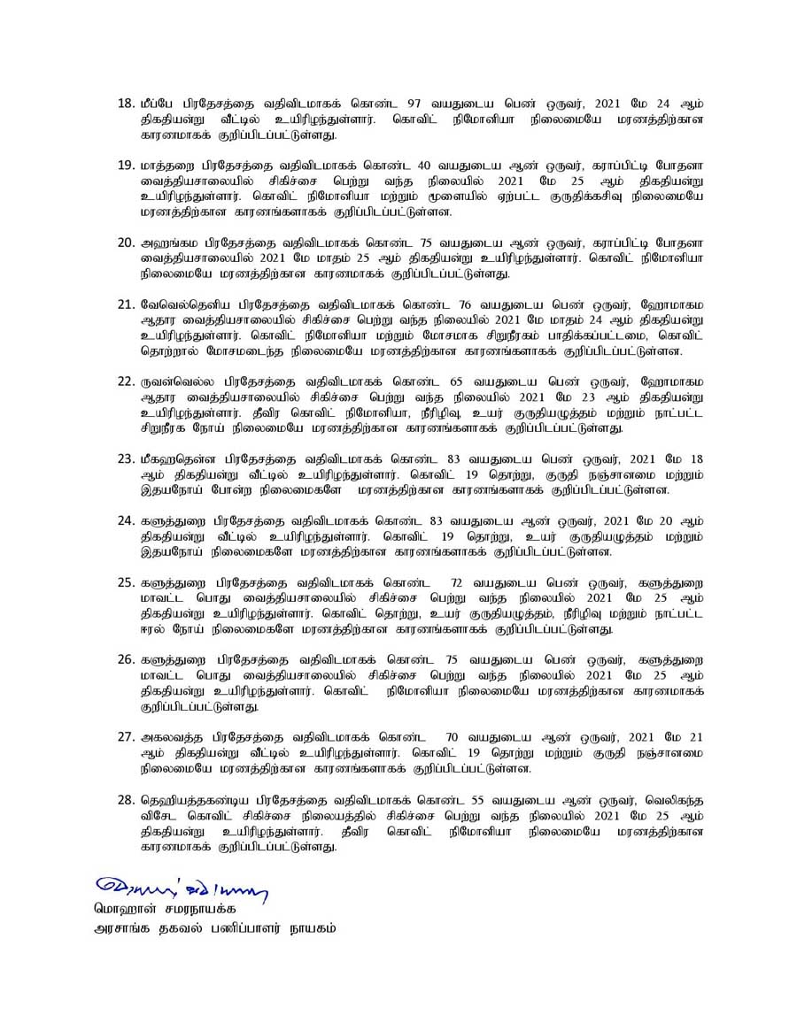 கொரோனா வைரஸ் தொற்றால் நாட்டில் மேலும் 28 பேர் உயிரிழந்துள்ளனர். சுகாதார சேவைகள் பணிப்பாளரின் உறுதிப்படுத்தலுடன் அரசாங்க தகவல் திணைக்களம் இதனை தெரிவித்துள்ளது.