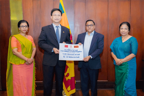 சீரற்ற வானிலை காரணமாக பாதிக்கப்பட்டுள்ள இலங்கைக்கு, அரசு சீன அரசாங்கத்திடமிருந்து 1 மில்லியன் அமெரிக்க டொலர் நிதி உதவியையும், 10 மில்லியன் யுவான் (Yuan) மதிப்புள்ள அவசர நிவாரணப் பொருட்களையும் நன்கொடையும் வழங்கப்பட்டுள்ளது.