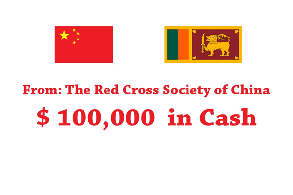 அத்துடன், சீன செஞ்சிலுவைச் சங்கம் மூலம் இலங்கை செஞ்சிலுவைச் சங்கத்திற்கு 100,000 அமெரிக்க டொலர்கள் வழங்கப்பட்டதுடன்,