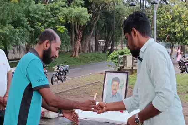 சுகிர்தராஜனின் திருவுருவப் படத்துக்கு மெழுகுவர்த்தி ஏற்றப்பட்டு உணர்வுபூர்வமாக மலரஞ்சலி அனுஷ்டிக்கப்பட்டது. (a)