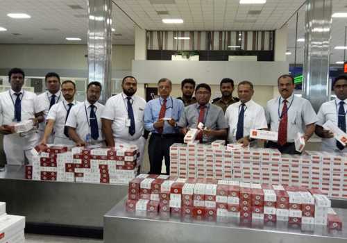டுபாயிலிருந்து வருகைதந்த விமானத்தில், கட்டுநாயக்க விமான நிலையத்தை வந்தடைந்த இவர்களின் பயணப் பொதியிலிருந்து, 53,13,000 ரூபாய் பெறுமதியான 483 சிகரெட் பொதிகள் கைப்பற்றப்பட்டுள்ளன.