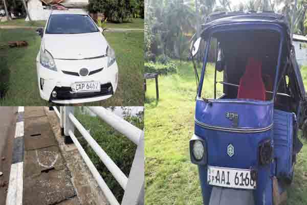 புத்தளம் கொழும்பு பிரதான வீதியின் பத்துளு ஓயா பாலத்தில் செவ்வாய்க்கிழமை (14) அன்று இரவு முச்சக்கர வண்டி ஒன்று அதிக மழை காரணமாக கட்டுப்பாட்டை இழந்து பாலத்தின் பாதுகாப்பு வேலியில் மோதியதில் கொழும்பு மற்றும் புத்தளம் ஆகிய திசைகளில் இருந்து வந்த கார் மற்றும் வேனுடன் மோதி விபத்து இடம் பெற்றுள்ளது.