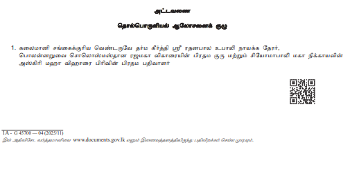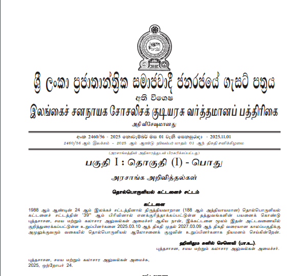 அதுதொடர்பிலான வர்த்தமானி அறிவித்தல் 2025 நவம்பர் 01ஆம் திகதி வெளியிடப்பட்டுள்ளது.