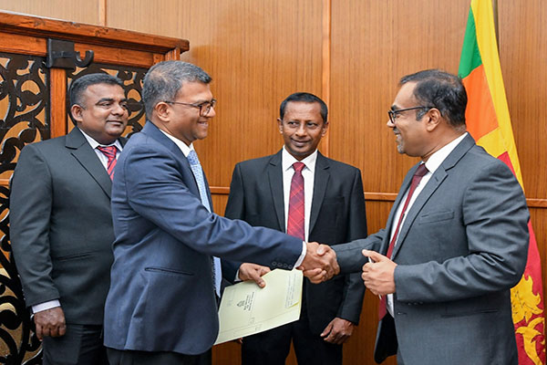 நிதி மற்றும் திட்டமிடல் பிரதி அமைச்சராகப் பதவிப் பிரமாணம் செய்த கலாநிதி அனில் ஜயந்த பெர்னாண்டோ மற்றும் பொருளாதார அபிவிருத்தி பிரதி அமைச்சராகப் பதவிப்பிரமாணம் செய்த நிஷாந்த ஜயவீர ஆகியோர் இன்று (13) காலை நிதி அமைச்சில் கடமைகளைப் பொறுப்பேற்றனர்.