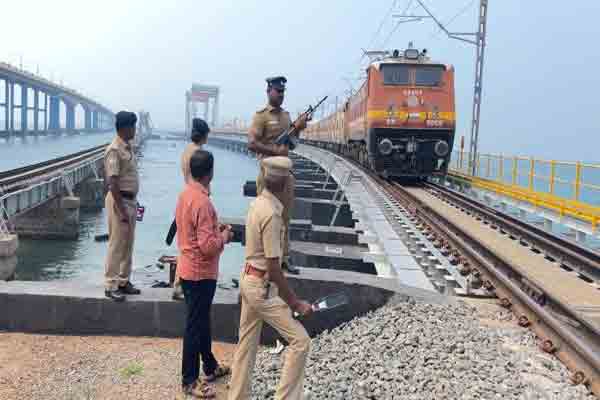 இந்நிலையில் பாம்பன் கடலில் புதிதாக கட்டப்பட்டுள்ளபுதிய ரயில் பாலத்தில் தமிழ்நாடு ரயில்வே பொலிஸார் ஆயுதம் ஏந்தி பாலத்தின் இருபுறமும் பாதுகாப்பு பணியில் ஈடுபட்டு வருகின்றனர். மேலும் பாம்பன் பாலம் வழியாக அந்நிய நபர்கள் யாரையும் செல்ல அனுமதிக்காமல் மீனவர்கள் பாலத்தில் அமர்ந்து மீன் பிடிக்க வேண்டாம் என்று எச்சரித்துள்ளனர்.