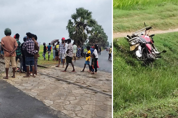 யாழில் இருந்து கொழும்பு நோக்கி பயணித்த அதிவிரைவு ரயிலுடனேயே மோட்டார் சைக்கிள் மோதியது.