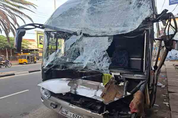 குறித்து விபத்தை தொடர்ந்து பிரதான வீதியில் வந்து கொண்டிருந்த முச்சக்கர வண்டியில் பஸ் மீது மோதியுள்ளது இதனால் பஸ்ஸில் நடத்துனர் படுகாயமடைந்தார்.