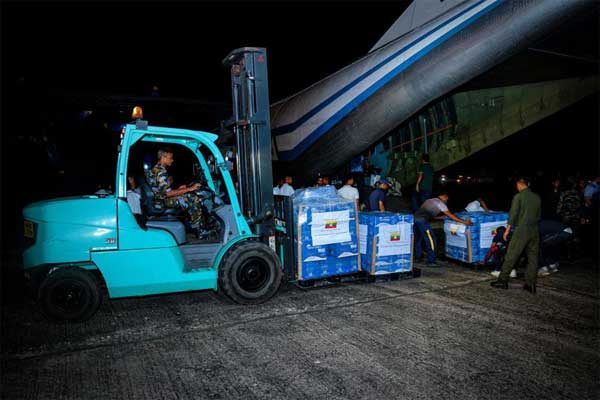 மியான்மர் விமானப்படை விமானம் (Y8) பேரிடர் நிவாரணப் பொருட்களை ஏற்றிக்கொண்டு சனிக்கிழமை (06) அன்று கட்டுநாயக்க விமானப்படைக்கு வந்தடைந்தது.