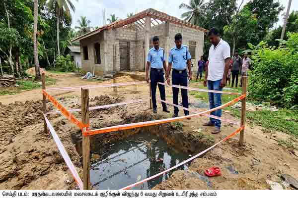 அனுராதபுரம் - மரதன்கடவலை பகுதியில் கட்டுமானப் பணியில் இருந்த வீடொன்றுக்கு அருகில் புறாக்களைப் பிடிக்கச் சென்ற 6 வயது சிறுவன், நீர் நிறைந்திருந்த மலசலகூடக் குழிக்குள் விழுந்து உயிரிழந்துள்ளார்.