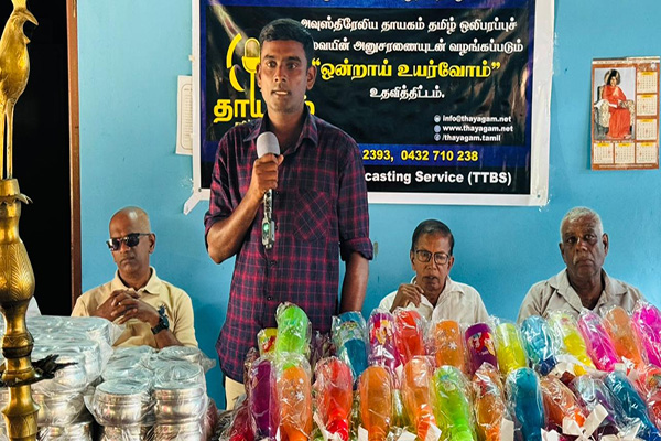 முல்லைத்தீவு மாவட்டத்தில் உள்ள தெரிவு செய்யப்பட்ட முன்பள்ளி மாணவர்களுக்கு அவுஸ்திரேலியாவில் இருந்து 24 மணி நேரம் ஒலிபரப்பாகும் 'தாயகம்' தமிழ் ஒலிபரப்புச் சேவை வானொலியின் 'ஒன்றாய் இணைவோம்' திட்டத்தின் கீழ் பாடசாலை உபகரணங்கள் வழங்கப்பட்டன.
