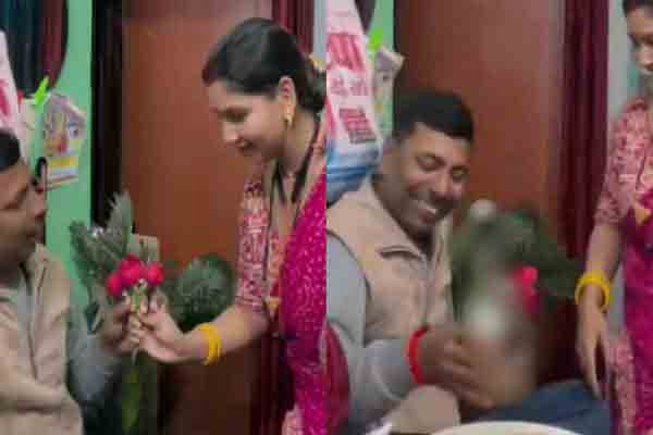காஞ்சன் தேவி என்ற பெண், தனது கணவருக்கு ரோஜாப் பூவை வழங்கி, பின்னர் ஒரு கிளாஸில் மதுவை ஊற்றி அவரிடம் கொடுப்பது போன்ற காணொளியை பதிவிட்டிருந்தார்.