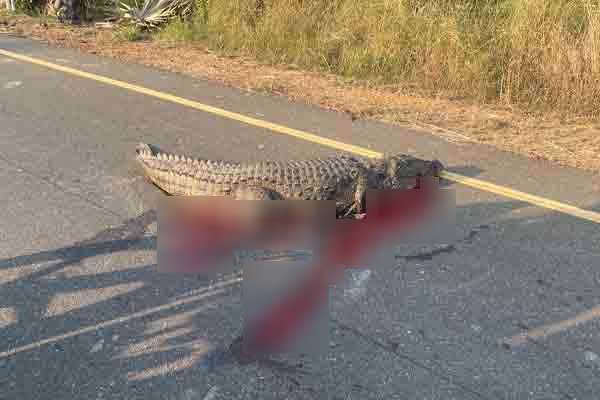 இவ்வாறு வீதிக்கு வந்த முதலையை, அந்த வழியாகச் சென்ற கனரக வாகனம் ஒன்று மோதியிருக்கலாம் என்றும், அதன் காரணமாகவே அந்த முதலை உயிரிழந்திருக்கலாம் என்றும் சந்தேகிக்கப்படுகிறது.