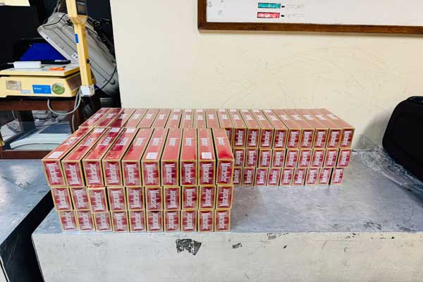 அவரது பயணப் பையை சோதனையிட்ட போது 36,000 வெளிநாட்டுத் தயாரிப்பு "மான்செஸ்டர்" சிகரெட்டுகள் அடங்கிய 180 அட்டைப்பெட்டிகள் மீட்கப்பட்டுள்ளது.