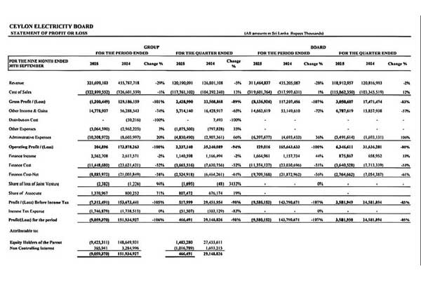 இலங்கை மின்சார வாரியம் (CEB) அதன் நிதி செயல்திறனில் குறிப்பிடத்தக்க சரிவை பதிவு விபரத்தை வௌயிட்டுள்ளது.