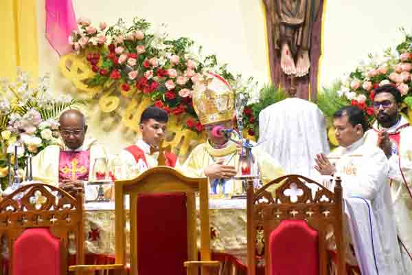 அதனை தொடர்ந்து புதன்கிழமை (31) இரவு 11.45 மணிக்கு மன்னார் மறைமாவட்ட ஆயர் மேதகு அந்தோனிப்பிள்ளை ஞானப்பிரகாசம் ஆண்டகை தலைமையில் குருக்கள் இணைந்து திருவிழா திருப்பலியை கூட்டுத் திருப்பலி ஒப்புக் கொடுத்தனர்.