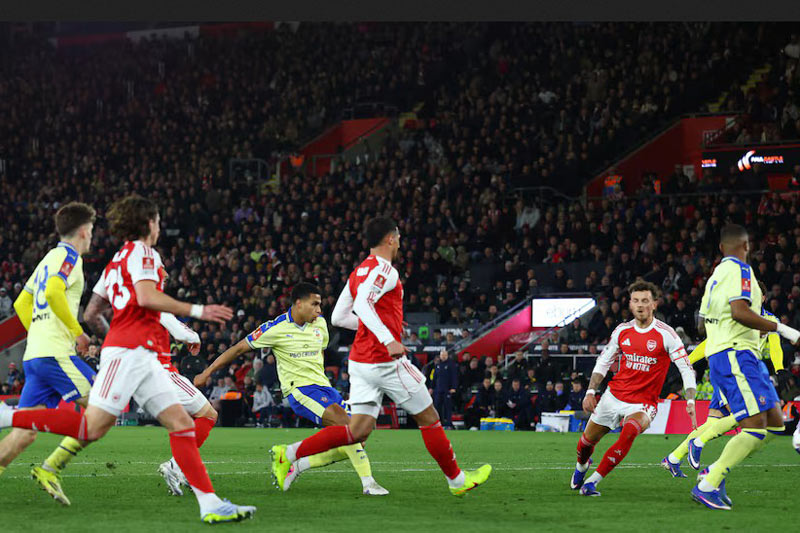 செளதாம்டனின் மைதானத்தில் ஞாயிற்றுக்கிழமை (05) நடைபெற்ற அவ்வணியுடனான காலிறுதிப் போட்டியில் 1-2 என்ற கோல் கணக்கில் தோற்றே தொடரிலிருந்து ஆர்சனல் வெளியேற்றப்பட்டுள்ளது.