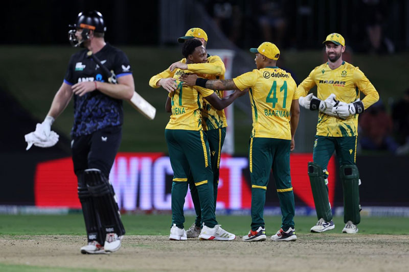 நியூசிலாந்து: 91/10 (14.3 ஓவ. ) (துடுப்பாட்டம்: ஜேம்ஸ் நீஷம் 26 (21), கோல் மக்கொங்கி 15 (11) ஓட்டங்கள். பந்துவீச்சு: நகோபனி மொகெனா 3/26 [3.3], ஜெரால்ட் கொயட்ஸி 2/14 [3], ஒட்னெய்ல் பார்ட்மன் 2/22 [3], கேஷவ் மஹராஜ் 2/25 [4])