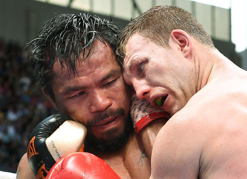 உலக குத்துச்சண்டை அமைப்பின், 63.5 தொடக்கம் 66.7 கிலோகிராம் வரையிலான எடைப் பிரிவுக்கான சம்பியன் போட்டியில், உலகச் சம்பியன் மனி பக்கியோவை வீழ்த்திய ஜெப் ஹோர்ண், அதிர்ச்சி வெற்றிபெற்றார்.