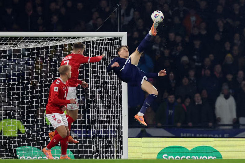 சர்வதேச கால்பந்தாட்ட சம்மேளன 2026 உலகக் கிண்ணத் தொடருக்கான ஐரோப்பிய தகுதிகாண் போட்டிகளில், ஸ்கொட்லாந்தில் புதன்கிழமை (19) நடைபெற்ற அந்நாட்டுடனான போட்டியில் 2-4 என்ற கோல் கணக்கில் டென்மார்க் தோற்ற நிலையில் அந்நாடு உலகக் கிண்ணத்துக்கு தகுதி பெற்றது.