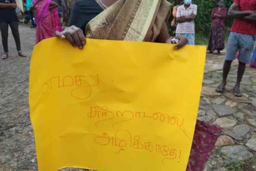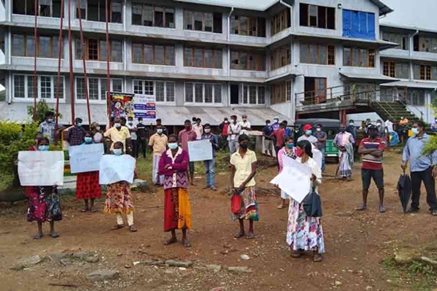 தோட்டத் தொழிற்சாலையின் முன்பாக ஒன்று கூடி மக்கள் இந்த ஆர்ப்பாட்டத்தினை